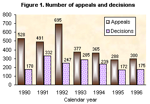 In 1996 there were 300 appeals to the court on Workers' Compensation