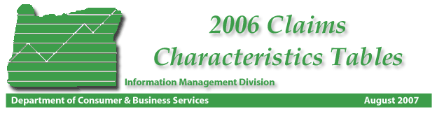 DISABLING CLAIMS BY INDUSTRY AND WEEKLY WAGE OF CLAIMANT, OREGON, 2006 TABLE 23. ACCEPTED DISABLING CLAIMS BY OCCUPATION AND WEEKLY WAGE OF CLAIMANT, OREGON, 2006 TABLE 24. NUMBER
